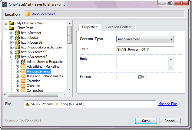 In this article I’ll show you how to extend Snagit by using the powerful features of OnePlaceMail to save the Snagit capture to a location in SharePoint.