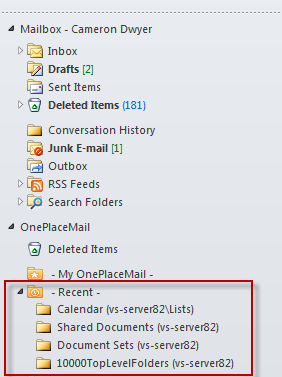 The challenge we faced in the development of this functionality was in determining the sort order of folders in Outlook 2010. For the Recent Locations functionality we would need the most recent folder at the top and for the folders to be in the order of when they were last used. Folders sort alphabetically in Outlook and in previous releases it has been possible to customize the sort order of the folders (MAPI code). Outlook 2010 removed the ability to customize the sort order using the old techniques. At the time of development we were not aware of anyone who has been able to achieve this and found several posts and articles stating it wasnāt possible in Outlook 2010. As you can see from the screenshots above, we have managed to achieve it in OnePlaceMail Release 6.1.