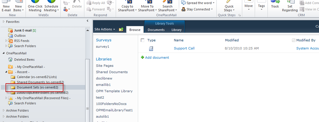 From a development perspective we were able to achieve some really nice integration with Outlook UI as part of this release. One of the highlights was the Recent Locations tracking and exposing this in the Outlook navigation pane. As you save emails/attachments using OnePlaceMail those locations are exposed as Recent Locations in the Outlook as shown below: