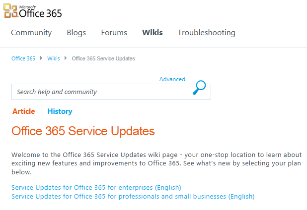 Microsoft have launched a Wiki site dedicated to keeping the public informed of upcoming enhancements and changes to both the Enterprise and Professional Office 365 plans. While this is still a long way from providing the public with a “test” version of their Office 365 environment with the update applied, it is a solid step in the right direction.
