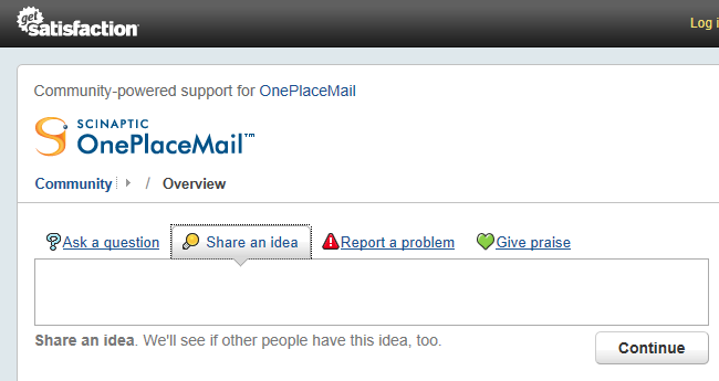 I’m excited to see this new public area for suggestions for future enhancements, it’s something we have always encouraged from our users but never has it been so public. The OnePlaceMail Community Site takes it one step further and encourages you to ‘vote up’ your favourite suggestions. As part of the OnePlaceMail development team, we will be using this list to determine priorities of our product backlog. So please let us know what’s most important to you – and be heard!