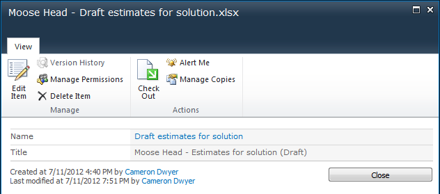 So in this quick scenario we have gone from a user who really just wanted to quickly attach a file and send it, to having the file stored once in SharePoint and a link sent out to multiple recipients, and the link uses the static URL provided by the Document Id feature to ensure link won’t be broken if the file is subsequently moved. All this with very little added effort or thought on the part of the user.