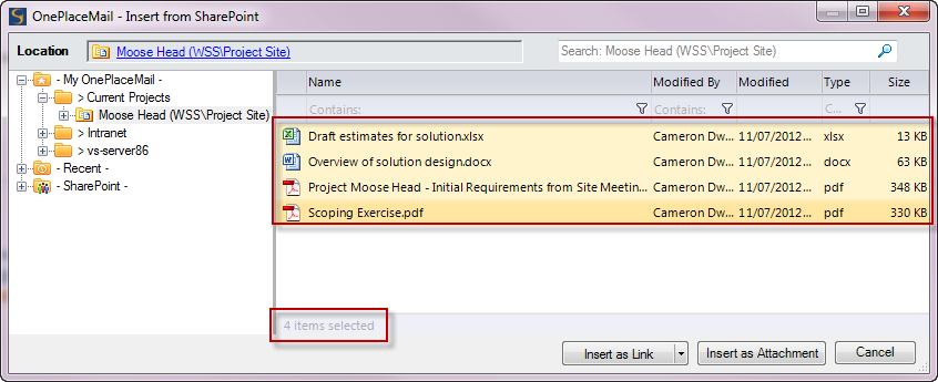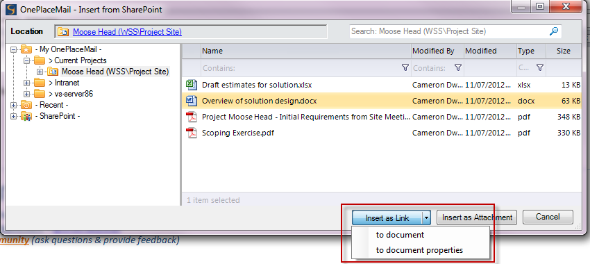 In this article I’m going to look at the different ways OnePlaceMail is now allowing you access and link to content in SharePoint in a much more user friendly way.