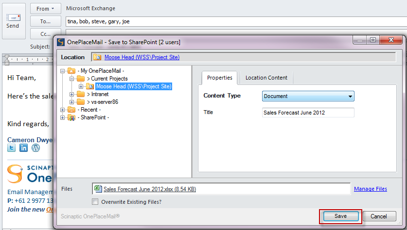Using SharePoint Content in Outlook Email the Easy Way Using OnePlaceMail
