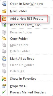 Right-click on the RSS Feeds folder and select Add a New RSS Feed…