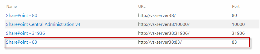 The screenshot below shows the results of performing a search query (via PowerShell) on the URL http://vs-server38:83. As you can see all URLs returned begin with http://vs-server38:83