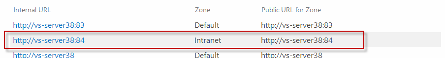 The site collection is then extended (which creates the alternate access mapping) http://vs-server38:84