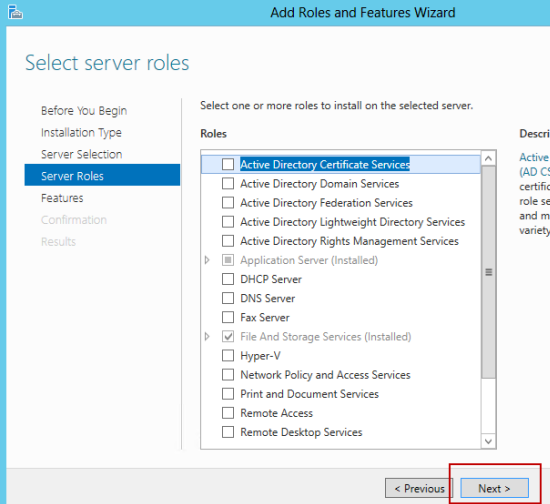 Just click Next to skip over Server Roles (it’s a feature we want to enable not a role)