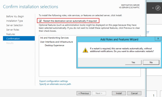 Click Install and your server should restart and the feature installation will complete once the server comes back up.