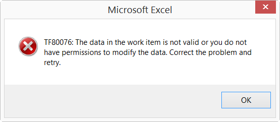 “TF80076: The data in the work item is not valid or you do not have permissions to modify the data. Correct the problem and retry.”