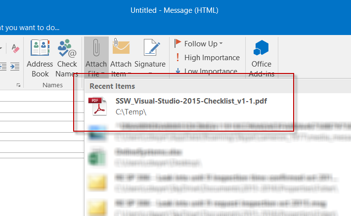This may just be the smallest and yet most appreciated new features of Outlook 2016. The attach file ribbon button has a dropdown that lets you select recent files saved from any other application. Sounds ridiculously simple, but in practice it is a real time saver.