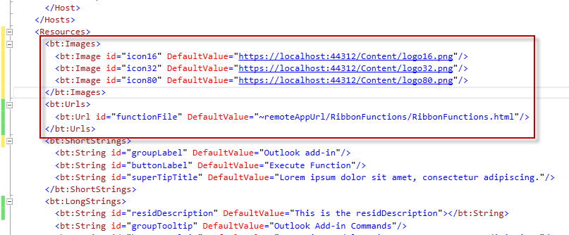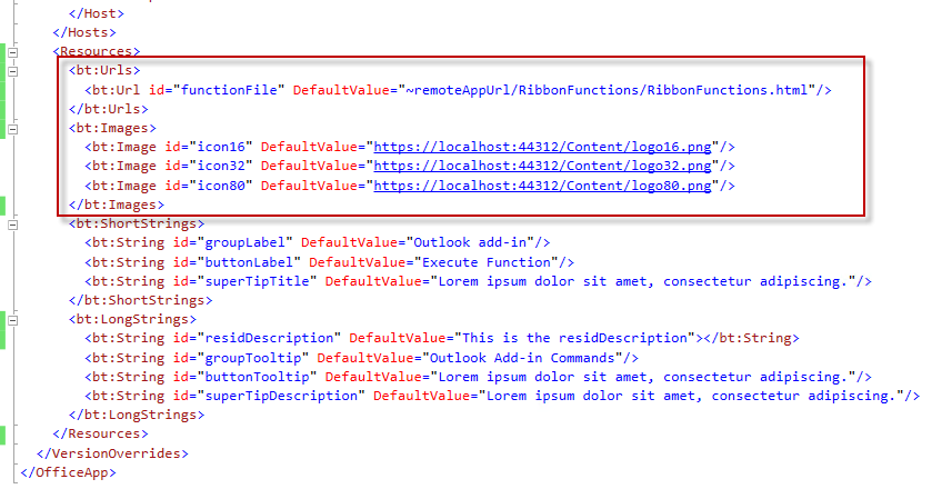 Failed to deploy the manifest file to the Exchange server. This app can’t be installed. The manifest file doesn’t conform to the schema definition. The element ‘Resources’ in namespace ‘http://schemas.microsoft.com/office/mailappversionoverrides’ has invalid child element ‘Images’ in namespace ‘http://schemas.microsoft.com/office/officeappbasictypes/1.0′. List of possible elements expected: ‘ShortStrings, LongStrings’ in namespace ‘http://schemas.microsoft.com/office/officeappbasictypes/1.0′... The element ‘Resources’ in namespace ‘http://schemas.microsoft.com/office/mailappversionoverrides’ has invalid child element ‘Images’ in namespace ‘http://schemas.microsoft.com/office/officeappbasictypes/1.0′. List of possible elements expected: ‘ShortStrings, LongStrings’ in namespace ‘http://schemas.microsoft.com/office/officeappbasictypes/1.0′.