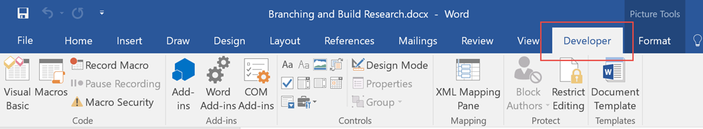 Here’s how we create the Word macro (this is in Outlook 2016)
