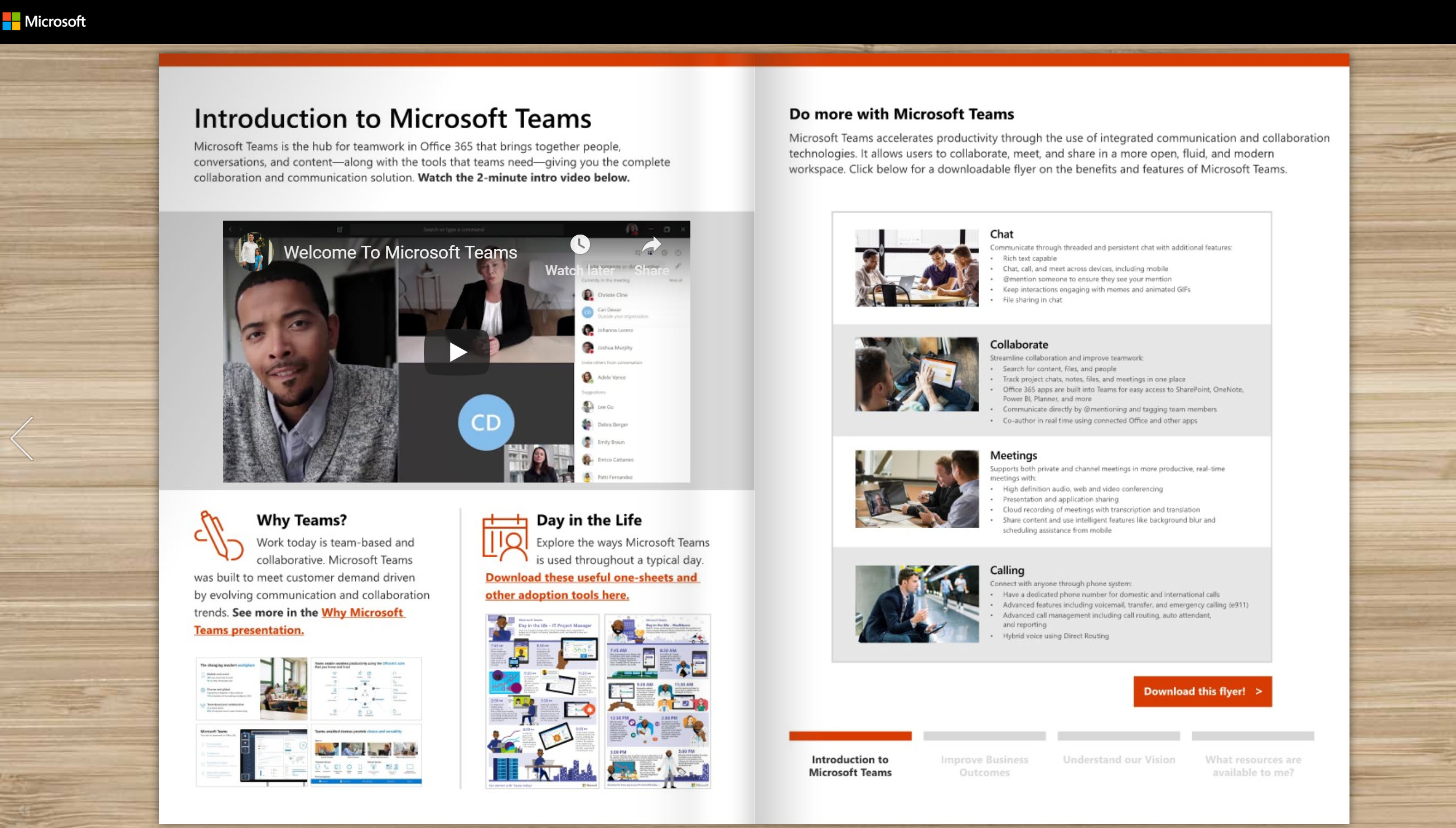 As with any product, it won’t magically fix your business problems simply by being installed and present on users machines. To make any product successful you will need a plan and to execute on it. To this end Microsoft has released an excellent resource in the Microsoft Teams Adoption Guide. This flipbook packs a lot of valuable information into a very polished and concise package. I highly recommend it as your starting point to a successful implementation of Microsoft Teams.