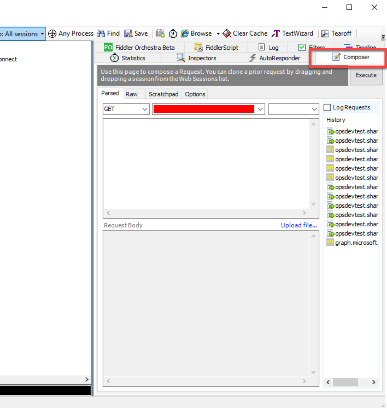 Select the Composer tab (on the right side of the Fiddler interface)