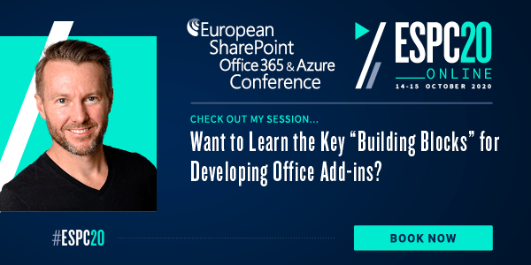 Join me for my ESPC20 Online session: Want to Learn the Key “Building Blocks” for Developing Office Add-ins?