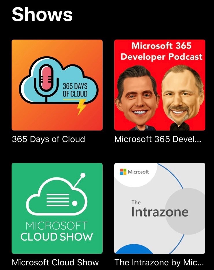 365 Days of Cloud (Rabia Williams & Mark Powney) a newer podcast only a few episodes in, mainly M365 developer topics