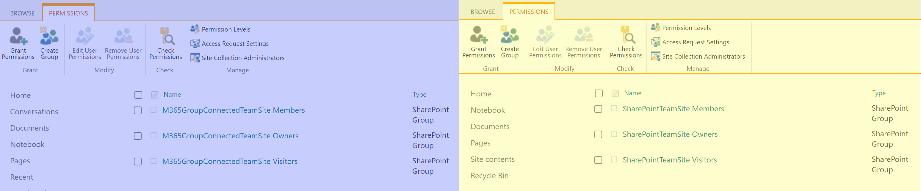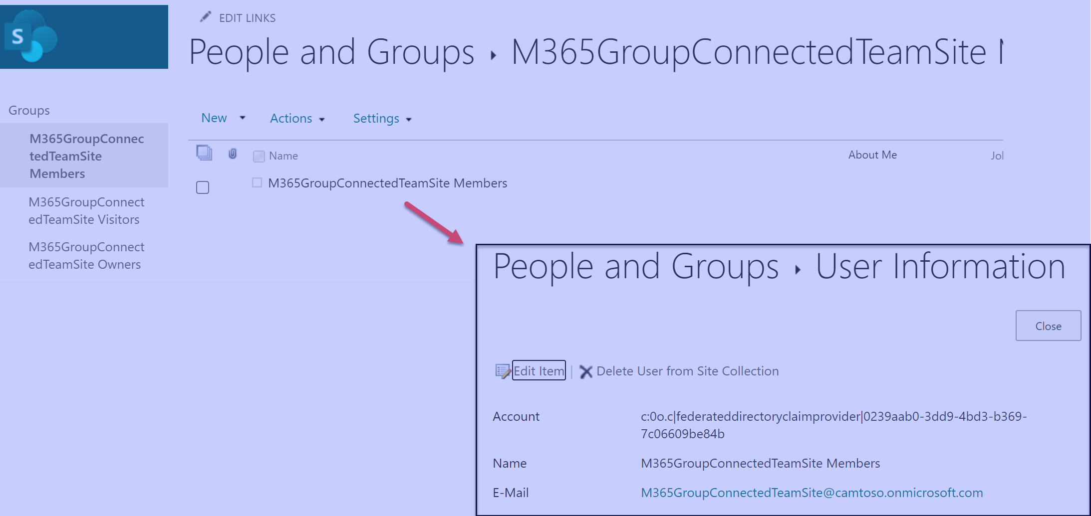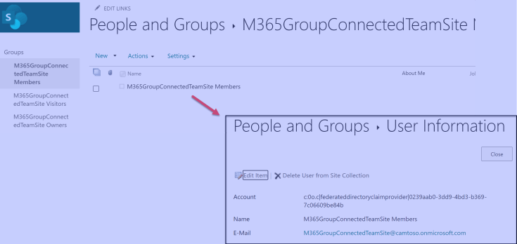 There is no difference between the Owners groups and Visitors groups. But let’s take a closer look at that Members group that got created in the “groupified” Team site.