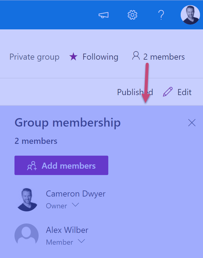 The process to add a person as a Member our the groupified site is a little different. By using Group membership | Add Members, I’ve added Alex to this site as well.