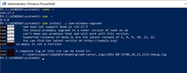 After attempting to upgrade my version of Node.js on my Windows 10 machine (directly from the Node.js LTS Windows MSI download) I was left with an install of Node.js where I couldn't use NPM. Anytime I tried to use NPM (Node Package Manager) I would get the following error npm WARN npm does not support... Continue Reading →