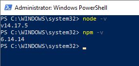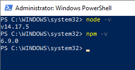 When I check the current versions of node and npm I can see node.js is at version 14.17.5 but npm is only at 6.9.0