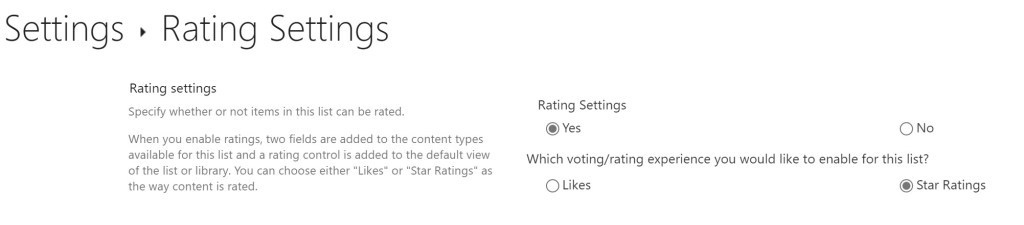 To give team members the ability to rate sessions they would like to see we can use the built in rating capabilities in SharePoint (List Settings | Ratings)