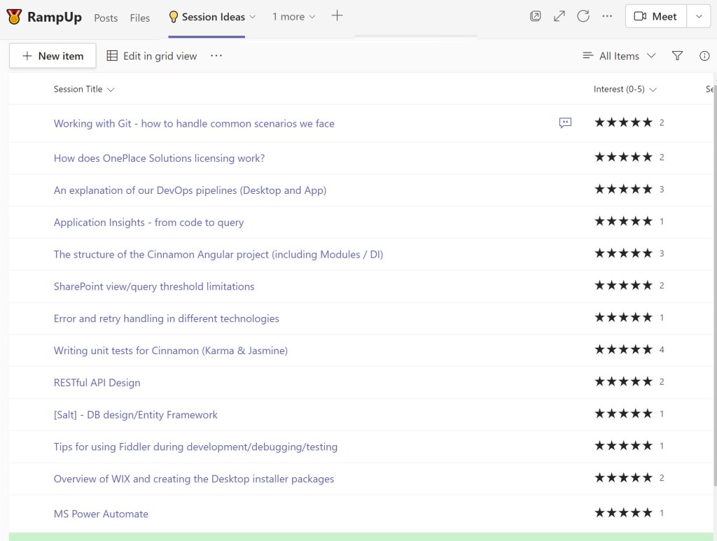 We are going to use a SharePoint list as a place for team members to suggest sessions (either that they would like someone else to present, or one that they are keen to present to others).