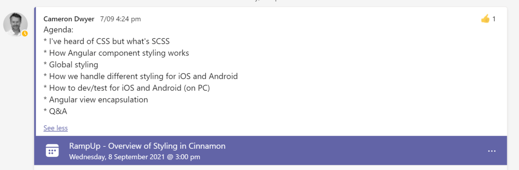 A great use case for connecting a whole lot of O365 components together. Especially relevant to me as I’ve been running an in-house weekly Lunch & Learn.