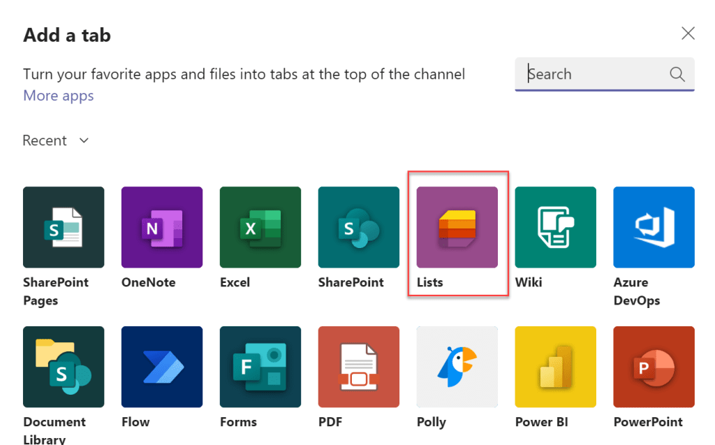 We can add our Session Ideas list to the RampUp teams channel (Add tab | List | Select the Session Ideas List)