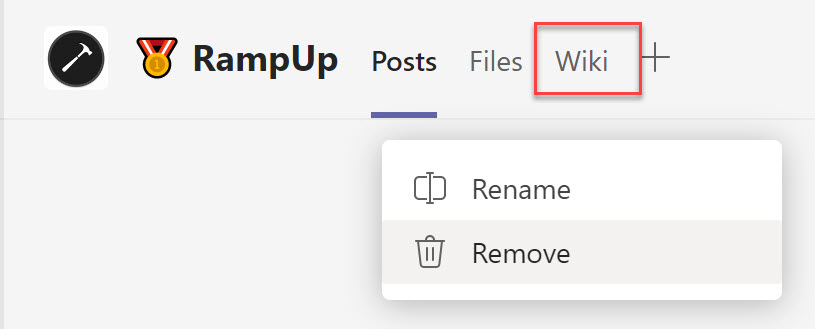 Remove the Wiki tab as we won’t be using it and we need the space because we have some more relevant tabs we will be creating.