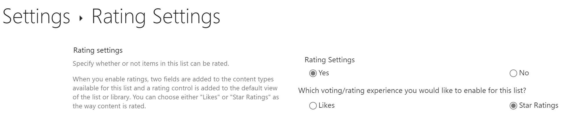To give team members the ability to rate sessions they would like to see we can use the built in rating capabilities in SharePoint (List Settings | Ratings)