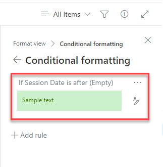 Then add a Conditional Formatting rule based on when the Session Date is after (Empty) then choose the styling you would like.