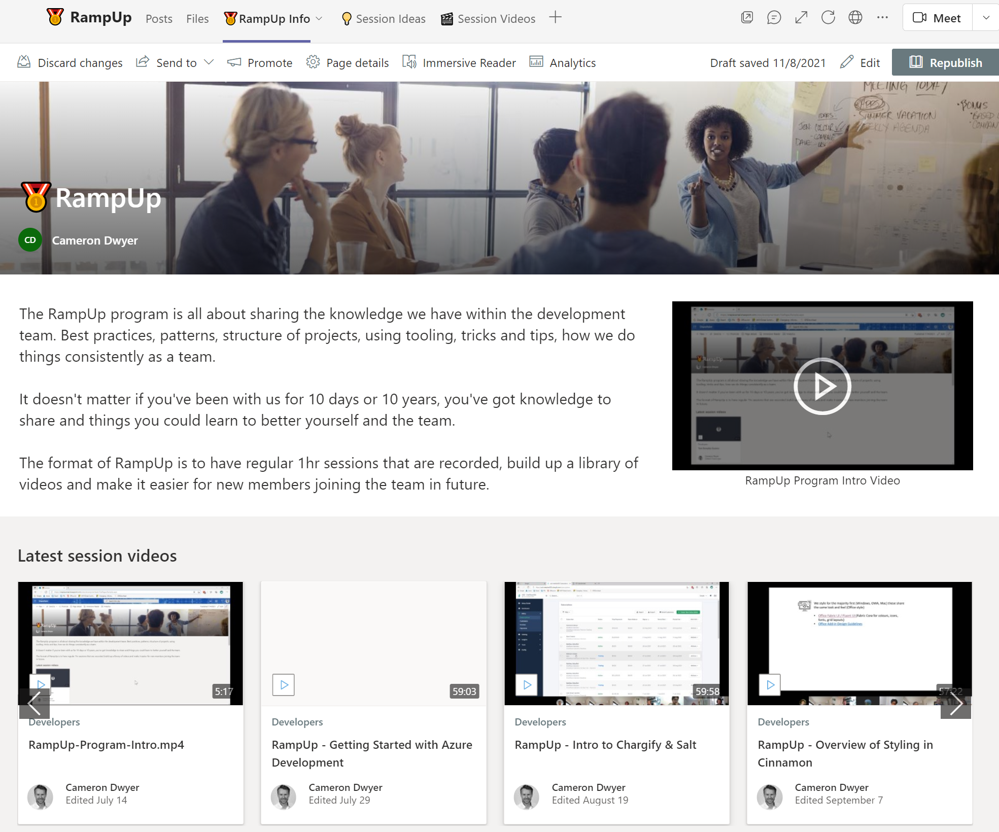 Now we have a pretty cool homepage for our RampUp program on the SharePoint site.